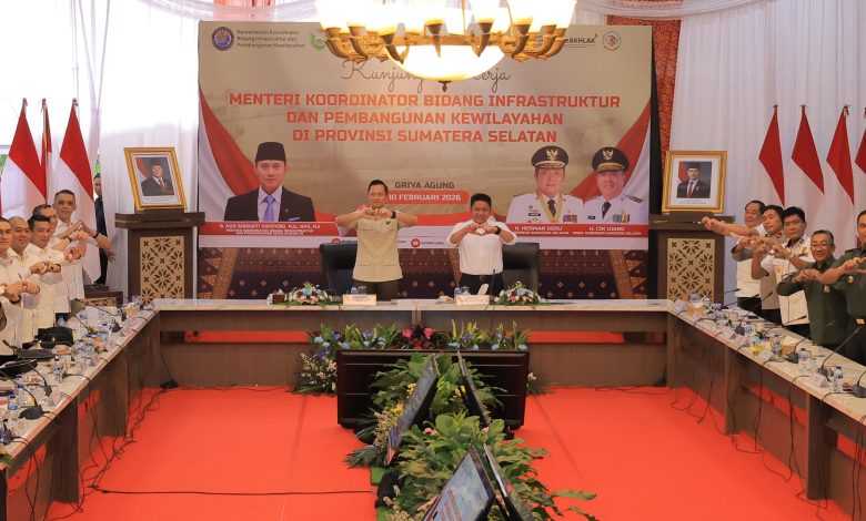 Menteri Koordinator Bidang Infrastruktur dan Pembangunan Kewilayahan, Agus Harimurti Yudhoyono (AHY), duduk bersama Gubernur Sumsel H. Herman Deru, Walikota Palembang Ratu Dewa, serta seluruh kepala daerah se-Sumsel untuk membahas percepatan pembangunan strategis.