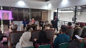 FGD menghadirkan narasumber pemantik Kepala Dinas Sosial Kota Palembang, M. Raimon Lauri AR, S.STP., M.Si , Ketua Harian TP2GD Kota Palembang, Dr. Kemas A.R. Panji, M.Si, Pelukis/Dewan Kesenian Palembang, Marta Astrawinata dan Budayawan, Vebri Al-Lintani
